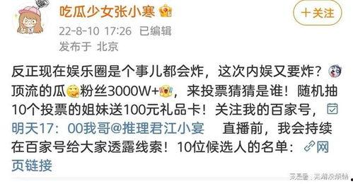 最近娱乐圈可是炸开了锅!张小寒这位八卦小能手又来爆料了,而且这次可是两个顶流明星哦!咱们就一起来聊聊这个话题,看看张小寒这次都爆了哪些猛料吧!